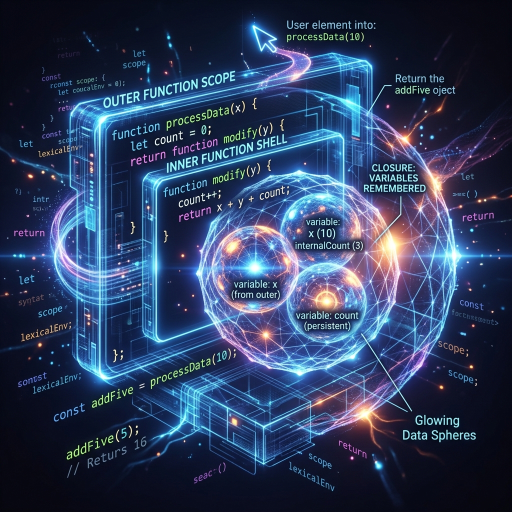 자바스크립트를 공부하다 보면 반드시 마주치는 거대한 산이 하나 있습니다.바로 ** 클로저(Closure) ** 입니다. "함수와 그 함수가 선언된 렉시컬 환경의 조합"이라는 MDN의 정의는 너무나도 추상적입니다.하지만 클로저는 React Hooks의 근간이자, 데이터를 안전하게 은닉(Information Hiding)하고, 함수형 프로그래밍을 가능하게 하는 자바스크립트의 핵심 엔진입니다.이 글에서는 난해한 이론 대신, 실무 예제와 도식화를 통해 클로저를 약 3,000자 분량으로 완벽하게 파헤쳐 봅니다.